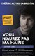 👉 Si tu aimes le théâtre drôle et tragique, qui fait vibrer, réserve vite ta place pour ce moment unique. On te conseille de ne pas attendre la dernière minute, tant le succès est au rendez-vous !