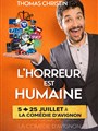 | Quand jules verne embarque indiana jones au pays de jurassic park ! 181 Le paris - salle 1, 84 000 Avignon du samedi 04 juillet 2026 au samedi 25 juillet 2026 25,00€* Entre opéra et humour, mozart f#cker offre une véritable master class de résilience transformant les épreuves de la vie en une partition exaltante ! 20,00€* Crocos, dm foireux, amour consommable... entre confidences, vannes et vérités qui piquent, big s explore les relations et la masculinité d'aujourd'hui. Être le super héros de sa vie, c'est le quotidien de julie bigot qui a pour arme le pouvoir de son culot, pour se faire confiance, rêver et se réaliser. 184 Le paris - salle 3, 84 000 Avignon du samedi 04 juillet 2026 au samedi 25 juillet 2026 "j'étais pas prête", c'est l'histoire d'une prof qui voulait changer le monde, mais qui a fini par changer de vie. 185 Le paris - salle 3, 84 000 Avignon du samedi 04 juillet 2026 au samedi 25 juillet 2026 "la seule et unique adaptation théâtrale du best-seller de geoffroy de pennart". 186 Le paris - salle 1, 84 000 Avignon du samedi 04 juillet 2026 au samedi 25 juillet 2026 Apprendre en s'amusant ! découvrir le monde des effets spéciaux. 187 Le paris - salle 2, 84 000 Avignon du samedi 04 juillet 2026 au samedi 25 juillet 2026 De son humour noir et son verbe bien aiguisé, sarah-anna, ancienne infirmière, découpe sans prendre de gants. 188 Le paris - salle 3, 84 000 Avignon du samedi 04 juillet 2026 au samedi 25 juillet 2026 -26% 16,25€* (22,00€) La vie est un film d'horreur, thomas christin en fait un one man show mordant où les galères du quotidien deviennent de grands éclats de rire. -30% 15,25€* (22,00€) Ça chante, ça groove et c'est drôle en plus ! 190 Ambigu théâtre, 84 000 Avignon du dimanche 05 juillet 2026 au samedi 25 juillet 2026 -44% 13,25€* (24,00€) Une comédie "ehpadante "qui réconcilie avec la vieillesse ! -22% 2,00€* (25,00€) Robin gomez dépasse les 100 millions de vues sur les réseaux grâce à ses courtes vidéos inventives, hilarantes et décalées. -3% 21,25€* (22,00€) Toutes les anecdotes rigolotes et coquines sur la drague, que les profs d'histoire n'ont jamais osé vous dévoiler. -31% 17,25€* (25,00€) Comme il le dit lui-même : "j'ai un faciès qui ne permet pas de laisser de longs silences"... -31% 13,75€* (20,00€) C'est marrant cette sensation quand on est adolescent de penser qu'on est des adultes, et de se rendre compte bien des années plus tard qu'on regrette de ne plus être un enfant. 195 Théâtre carnot, 84 000 Avignon du lundi 06 juillet 2026 au samedi 25 juillet 2026 -4% 24,25€* (25,00€) Après une tournée complète et des salles combles partout en france, en suisse et en belgique, lalou repart sur les routes en 2026. -3% 21,25€* (22,00€) Réunion des "saltimbanques anonymes" :venus pour sevrer de l'art ils vont s'autoriser une ultime "rechute" ou toutes les excentricités seront permises -35% 11,25€* (17,50€) Benoît vous raconte une histoire politique, absurde et avec des chips à l'intérieur. à mi-chemin entre le petit nicolas et les monty python. -3% 21,25€* (22,00€) Toi aussi, t'en as marre de tomber sur des connards ? tu es au bon endroit ! -42% 6,25€* (10,95€) Qui sera le meilleur humoriste du festival d'avignon ? -3% 21,25€* (22,00€) Venez voir "petits secrets d'une fille noire" de arfina lamy à la comédie saint roch à avignon -2% 26,25€* (27,00€) Une soirée loin d'être de tout repos... et pleine de conséquences au festival théâtre en vigne -2% 26,25€* (27,00€) Venez voir clément blouin dans son spectacle "magicien" à la comédie saint roch à avignon -33% 21,25€* (32,00€) J'ai toujours eu cette sensation d'être un peu décalé par rapport aux autres, plus j'avance dans la vie et plus ça se vérifie. 204 Le paris - salle 1, 84 000 Avignon du jeudi 09 juillet 2026 au dimanche 12 juillet 2026 -31% 13,75€* (20,00€) Le personnage de freddy emmène le public dans une exploration philosophique très tougaussienne sur le thème "l'un et l'autre" -3% 23,25€* (24,00€) Une comédie tout public rurale et truculente avec des vacheries, des couillonnades et des effets spéciaux ! -1% 19,25€* (19,50€) Venez voir vincent chevarin dans son spectacle "assumation" à la comédie saint roch à avignon -8% 15,50€* (17,00€) Un seul en scène qui se regarde, s'écoute, se ressent et s'imprime en soi comme un rêve éveillé. un voyage musical au coeur de l'humanité. 208 Ambigu théâtre, 84 000 Avignon du lundi 13 juillet 2026 au samedi 25 juillet 2026 -3% 23,25€* (24,00€) La nouvelle comédie de thom trondel, entre pretty woman et le dîner de cons ! 2,00€* (2,00€) "de vous à moi" : deux plumes, deux générations - dialogue entre deux univers féminins, porté par un piano-voix au service de l'émotion. 210 Ambigu théâtre, 84 000 Avignon du mercredi 15 juillet 2026 au samedi 25 juillet 2026 |