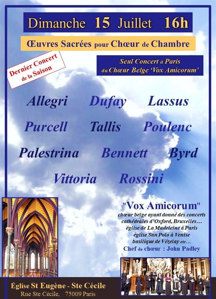 Seul Concert à Paris du Choeur Belge 'Vox Amicorum'