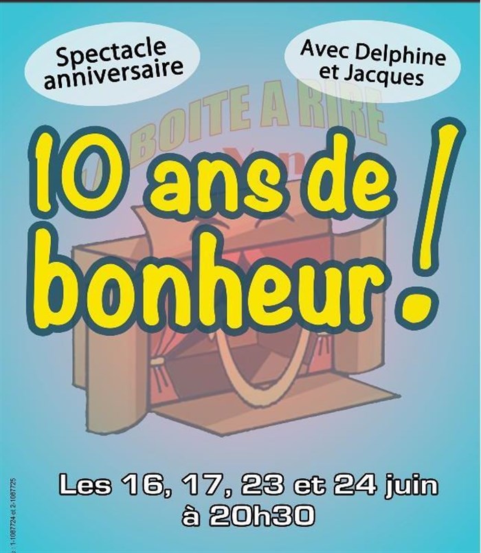 A travers des sketchs entremêlés de chansons, Delphine Chicoineau et Jacques Bernet sont tout simplement heureux de vous retrouver à la Boîte à Rire pour fêter les 10 ans du théâtre.