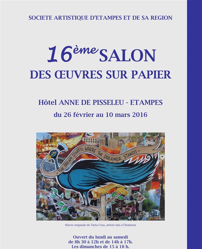 La Société Artistique d'Etampes présentera dans le cadre prestigieux de l'hôtel Anne de Pisseleu à Etampes, son 16ème Salon des Œuvres sur papier.