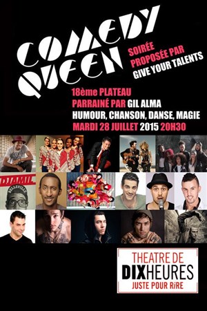 Plateau d'artistes génial auquel j'ai eu l'honneur de participer. Tous les artistes étaient super, chacun avec leur univers : humour, chanson, musique. Le tout dans un cadre idyllique. Pour passer une bonne soirée, c'est au Comedy Queen qu'il faut aller !