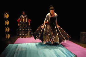 Mais ce spectacle ne se limite pas à Cendrillon puisqu'il met en scène 9 héros/héroïnes également issus du Petit Chaperon Rouge. Tour à tour, les comédiennes changent de rôle pour devenir prince, loup, demi-soeur, marâtre. Au même moment, le décor se transforme, passant d'un tapis à une cape, un arbre, une jupe...