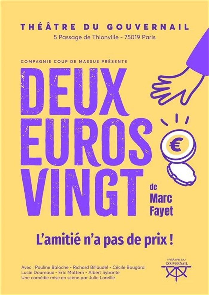 Découvre 2 euros 20, qui fait partie de notre sélection d’événements de type Comédies contemporaines et qui se tient ici : Théâtre du Gouvernail -