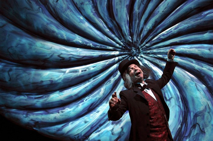 Emporté par son récit, le truculent professeur s'anime, s'enflamme et revit son aventure tout en l'illustrant avec les objets et les animaux empaillés de son laboratoire.