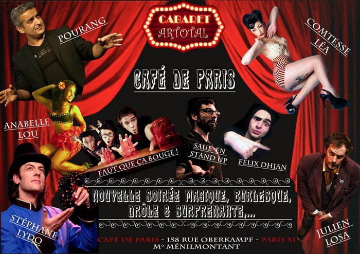 Le Cabaret Artotal, c'est une fois par mois, une soirée originale à Ménilmontant où des artistes professionnelles, où en route pour le devenir, se côtoient pour vous proposer une soirée unique avec Magie, jonglage, humour, surprises, musique, vidéos, effeuillage...