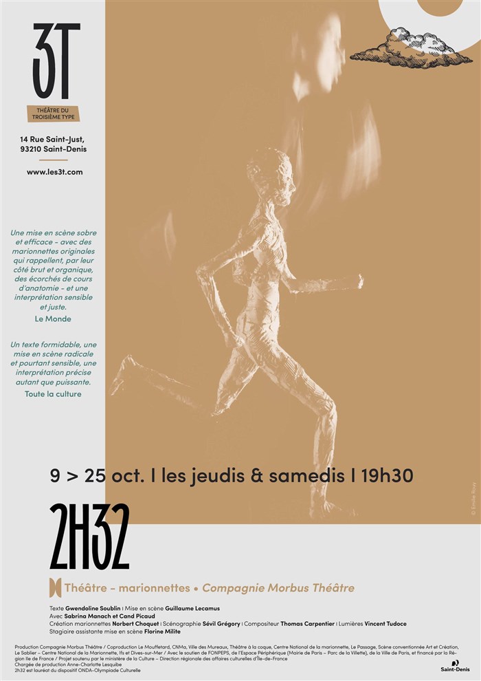 A eux quatre, ils contribuent à faire de 2h32 un exemple d'équilibre réussi entre une écriture résolument contemporaine, flirtant même parfois avec le surréalisme, une mise en scène sobre et efficace - avec des marionnettes originales qui rappellent, par leur côté brut et organique, des écorchés de cours d'anatomie - et une interprétation sensible et juste.