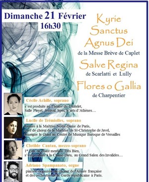 Kyrie, Sanctus, Agnus Dei de Caplet - Salve Regina de Scarlatti et Lully - Flores o Gallia de Charpentier....