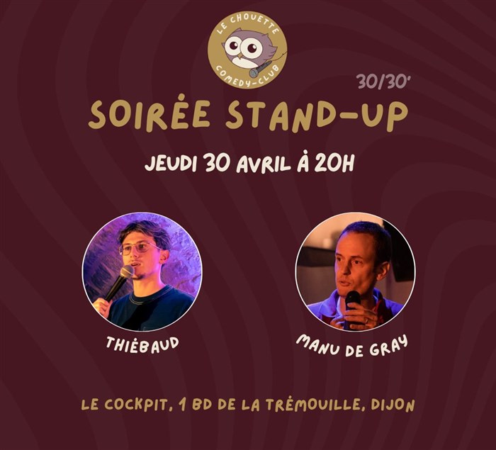 Découvre 30/30 : Thiébaud Derozier & Manu de Gray, qui fait partie de notre sélection d’événements de type Stand up et qui se tient ici : Le Cockpit -
