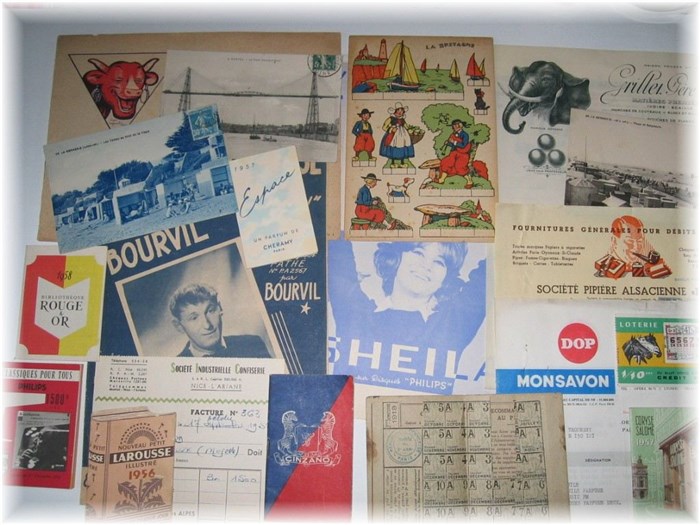 Ainsi que d'autres objets de collection : affiches, photos anciennes, gravures, publicités, marque pages, images pieuses, buvards, calendriers, factures, monnaies, actions et titres anciens...