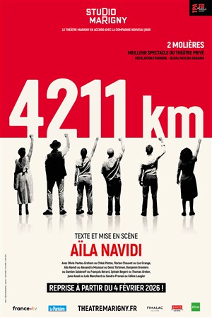 Après avoir conquis plus de 65 000 spectateurs, la pièce doublement primée aux Molières, 4211 km revient sur la scène du Studio Marigny.