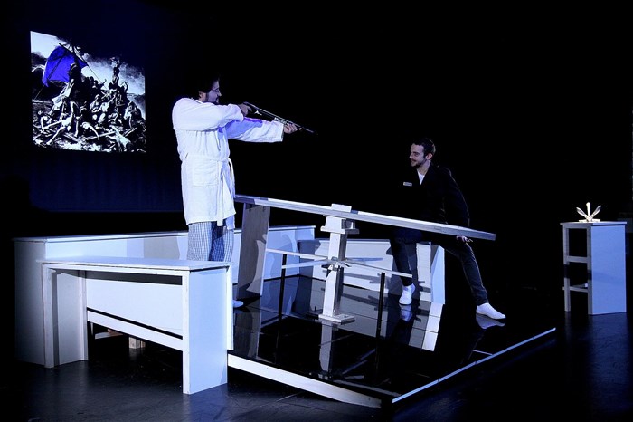 Un texte très drôle, écrit au vitriol, des comédiens impressionnants, une scénographie hallucinante. Une vraie claque.