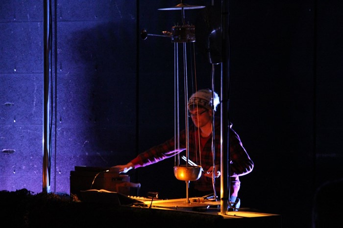 Quand l'écran se relève, la performance commence : Douglas Rand, acteur et slameur, fait résonner au micro le poème de Ginsberg en américain et en français.
