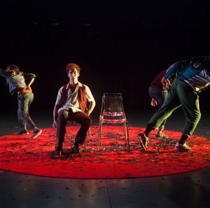 Un coup de téléphone étrange, une porte fracassée, une machine à laver qui tombe des cintres, la table basse devient un bouclier quand des projectiles visent les acteurs depuis les coulisses. La réalité se disloque.