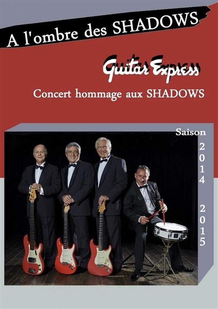 "Guitar Express" 35 ans d'expérience, un son chirurgical, du véritable " Shadows " note pour note et pour les yeux, les guitares, les amplis et la batterie d'époque sans oublier les smokings & les chorégraphies.