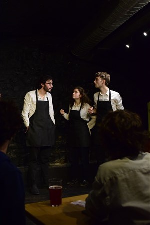 Tabliers, menus et corbeilles d'épices... Nos 4 cuisiniers vous accueillent dans leur nouveau restaurant au concept inédit de cuisine ouverte et participative. Le public choisit quelles improvisations lui seront servies et comment il souhaite les assaisonner avec les idées d'émotions, objets, lieux, personnages... collectées lors de l'accueil des spectateurs.