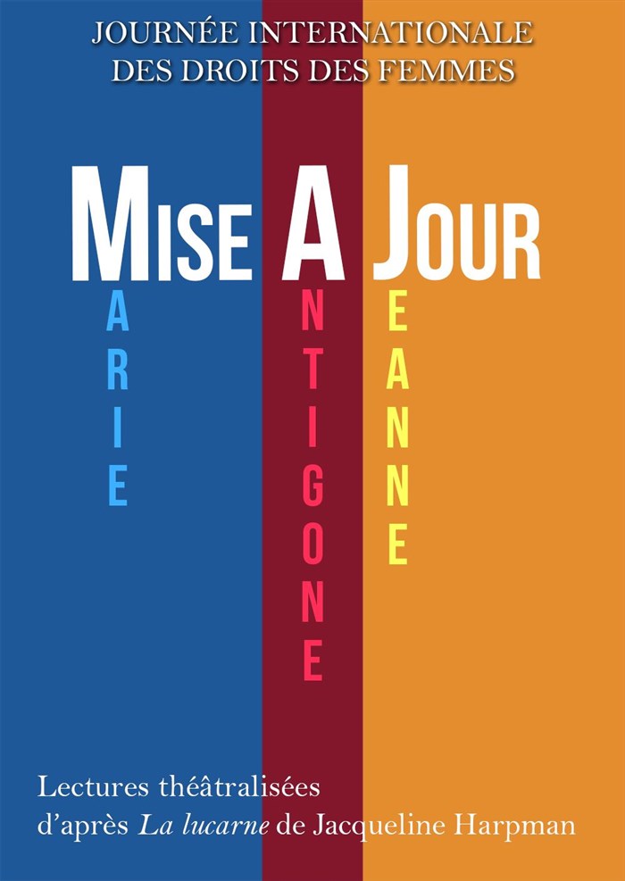 Prisonnières de leurs mythes depuis trop longtemps, trois jeunes femmes prennent la parole pour remettre les pendules à l'heure. À travers la plume de Jacqueline Harpman ; Antigone, Jeanne d'Arc et la Vierge Marie font résonner leurs voix audacieuses et libres, en dégommant nos idées reçues. Venez découvrir leurs histoires sous la forme de lectures théâtralisées, à l'occasion de la Journée internationale des droits des femmes.
