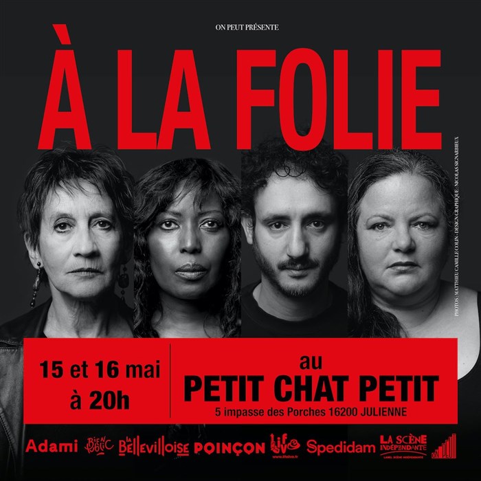 Découvre À la folie, qui fait partie de notre sélection d’événements de type Célébrités et qui se tient ici : Théâtre du Petit Chat Petit -