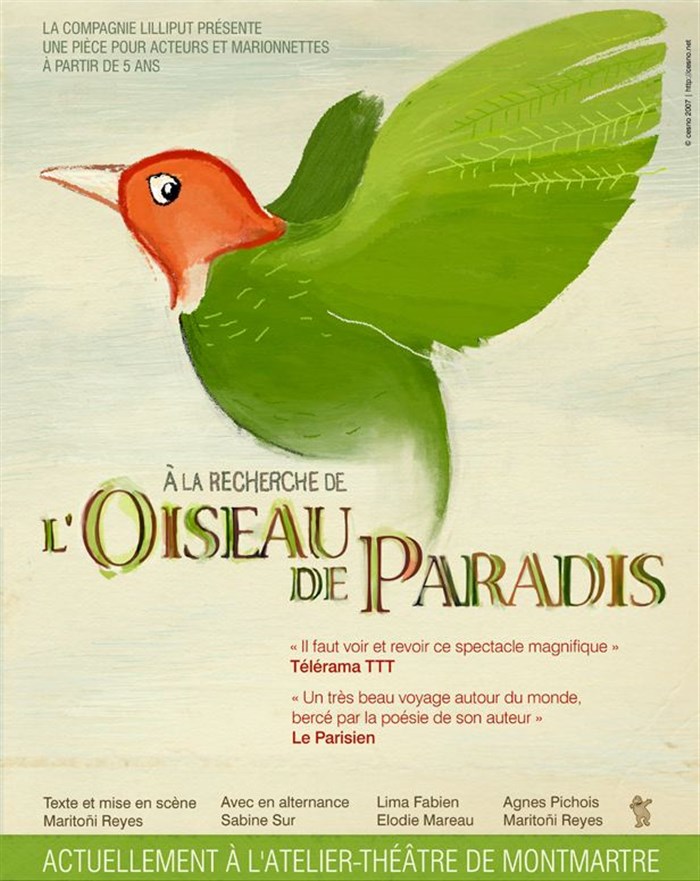 Petits moyens, pièce magnifique, voici le défi relevé par l'épatante Maritoni Reyes. La nouvelle création de la Compagnie Lilliput, " A la recherche de l'oiseau de paradis' est un spectacle d'une infinie richesse et d'une grande générosité...)CARÈNE VERDON