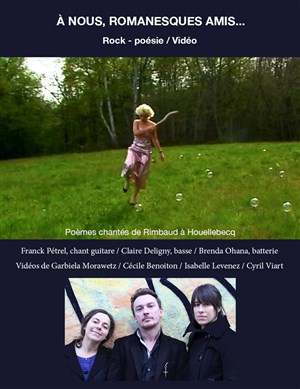 À Nous, Romanesques Amis a l'ambition d'entrelacer poésie contemporaine chantée, musique actuelle et vidéo. Mises en musique de Franck Pétrel.
