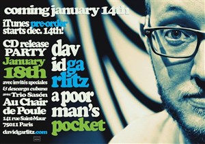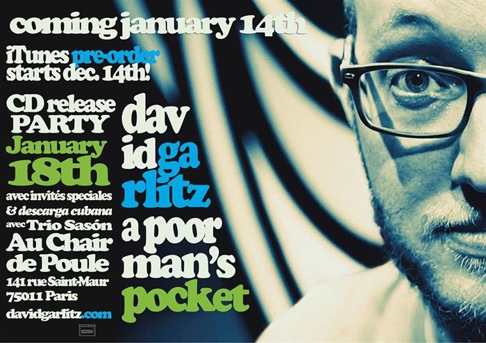 Après le succès de son EP en septembre 2012 et sa mini-tournée des Etats-Unis l'été d'après, auteur-compositeur David Garlitz sort son premier album, intitulé "A Poor Man's Pocket." Pour fêter ça, une soirée exceptionnelle avec des invités spéciales, suivi d'un jam session cubain avec Trio Sasón - ¡pa' gozar !