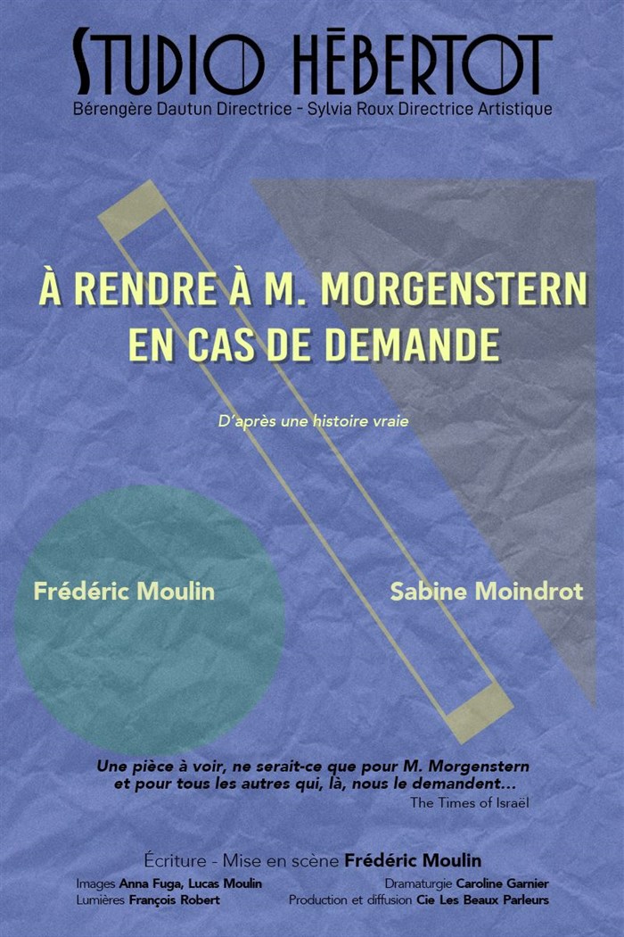Tu veux savoir ce qu’ont pensé les spectateurs et la presse de cet événement : À rendre à M. Morgenstern en cas de demande - Studio Hebertot ? Découvre leurs avis éclairés et prépare-toi à vivre un moment d’exception à ton tour en réservant tes places !