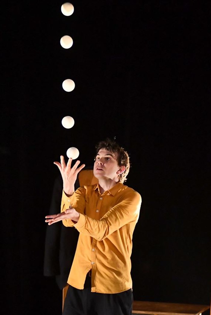 Dans son petit monde intérieur il y a des tiroirs secrets, trois planches et un tabouret, des balles facétieuses et des trucs récalcitrants. Mais ce fanfaron emprunté, génial jongleur ou pitre attendrissant fera de ses maladresses une symphonie de bric et de broc.