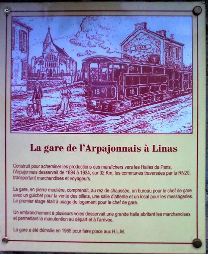 De 1894 à 1936, la nuit, ce petit train mythique reliait Arpajon aux Halles de Paris afin d'approvisionner la capitale en ressources maraîchères et le jour, transportait des voyageurs. Tantôt sur route, tantôt en site propre, son parcours est encore bien distinct et certaines de ses gares encore debout.