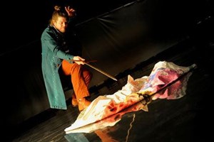 À partir de la multitude de jupes peintes pour son précédent spectacle (L'Hiver quatre chiens mordent mes pieds et mes mains), la compagnie Pour Ainsi Dire compose un univers plein de fantaisie dans lequel se déploie ce conte moderne.