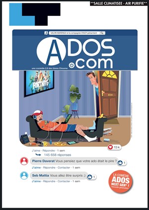 J'ai passé un excellent moment devant Ados.com ! Les acteurs sont vraiment à fond et on rigole du début à la fin. Les situations sont proches de la vie des ados d'aujourd'hui, ça parle de réseaux, de parents, de collège... bref, on s'y reconnaît à fond. À voir en famille ou entre potes !