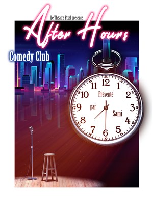 L' After Hours Comedy Club est d'inspiration New Yorkaise au sein duquel 6 humoristes se succèderont pour vous faire rire durant une heure. Le Show se déroulera dans un décor inspiré des films de Scorsese et une ambiance sonore allant de Sinatra à Alicia Keys. Plus qu'un plateau d'humoristes, une expérience. Véritable endroit où tous les types d'humours sont représenté, vous passerez de dodo, métro, boulot à rire, rire, rire.