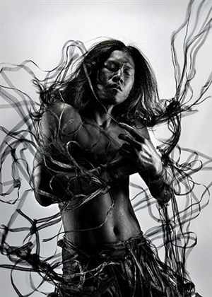 Akalika est le nom d'artiste du peintre Gilbert Cam. Ses lavis géants sur papier sont des silhouettes humaines mutilées qui ont inspiré - ou peut-être hanté - l'univers chorégraphique d'Olé Khamchanla, né lui aussi au Laos.
