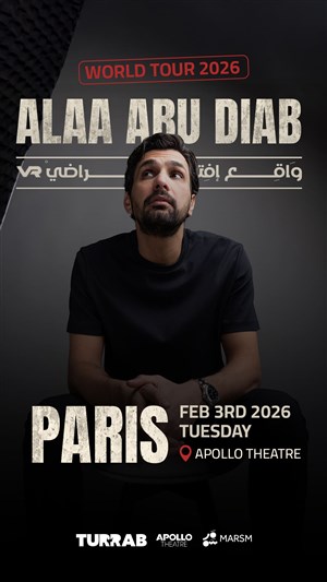 Après deux ans d'absence, Alaa Abu Diab revient avec un tout nouveau spectacle de stand-up, dans lequel il explore la façon dont nous passons d'un monde à un autre en l'espace de quelques minutes — comme lorsque l'on enfile un casque de réalité virtuelle.
