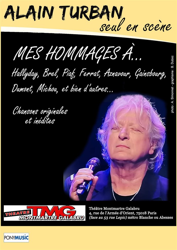Un spectacle très intimiste dans une petite salle fort agréable. Un Artiste qui a beaucoup de talent accompagné par deux excellents musiciens. Des nouvelles chansons sur Montmartre de qualité égale aux précédentes. Le pianiste-guitariste chante divinement bien. L'accordéon ajoute une ambiance à ce récital. Seul bémol Alain Turban ne chante aucun tube "disco" en cette période ou les médias veulent remettre cette musique à la mode ("Santa Monica" aurait été agréable ainsi que "go homme"). Un spectacle que je conseille à tous ceux qui aiment la bonne chanson française. J'espère que le spectacle de la cigale en octobre 2008 aura bien lieu.