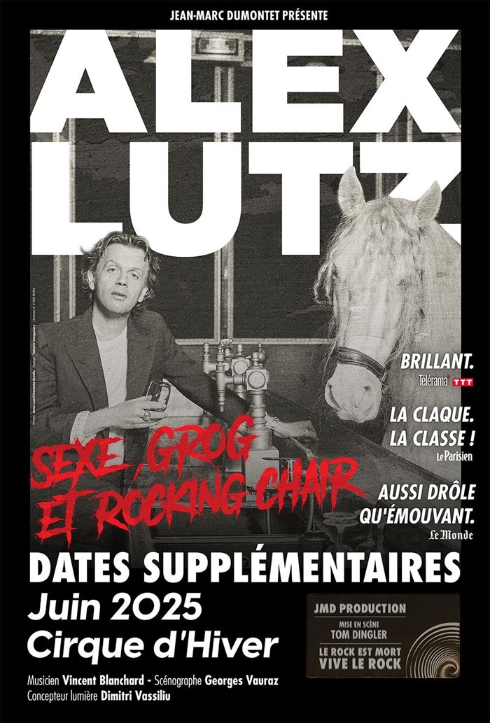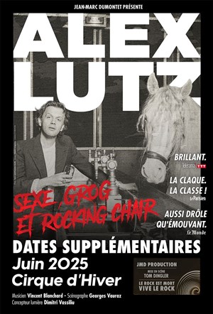 Après le succès de ses deux précédents spectacles récompensés des Molières de l'Humour 2016 et 2020, Alex Lutz remonte sur scène plus rock que jamais (ou pas) au Cirque d'Hiver pour son troisième spectacle.