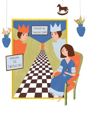 Seule dans le salon, à regarder passer le temps, Alice s'ennuie tout en philosophant avec sa petite chatte Kitty. Elle tente de lui enseigner les échecs mais c'est peine perdue. C'est alors que son regard se porte sur le grand miroir au milieu du salon. Tout semble pareil et pourtant...Tout y est inversé, à l'envers... Que se passe-t-il réellement de l'autre côté ? " Faisons semblant ", nous dit Alice... L'aventure commence alors !