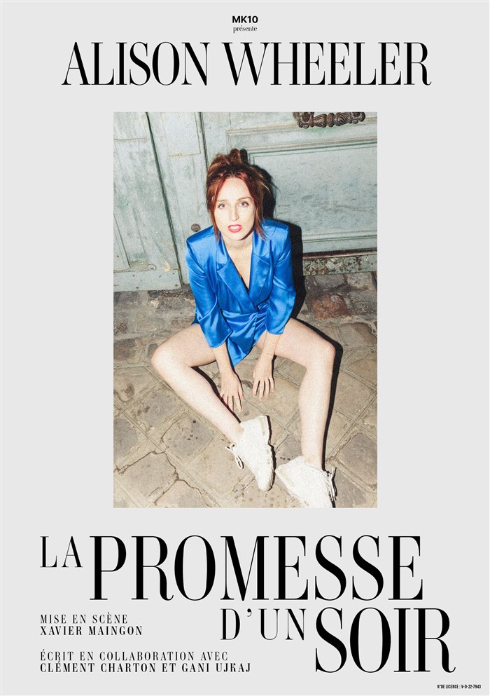 Alison, pour moi une première qui en amènera d'autres . Ce premier spectacle est une grande réussite ..aucun doute qu'il a déjà trouvé son public . Talentueuse , drôle , très même ,cette artiste s'impose pleinement sur scène .gros capital de sympathie et d'empathie ..à noter ce qui n'est pas négligeable , une superbe voix musicale ...Congrats Alison.....je conseille vivement ...
