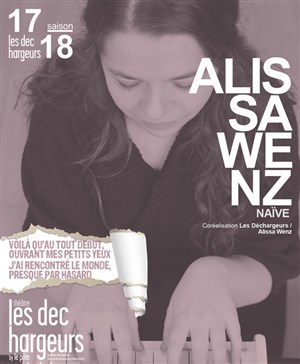 Un piano pour une voix. Seule en scène, Alissa Wenz compose un voyage où chaque chanson est une histoire, une confidence. Dans un univers où humour et poésie s'emmêlent, elle écrit, compose et interprète ses textes, inspirée par quelques grandes voix féminines de la chanson française, Barbara, Anne Sylvestre, ou Juliette.