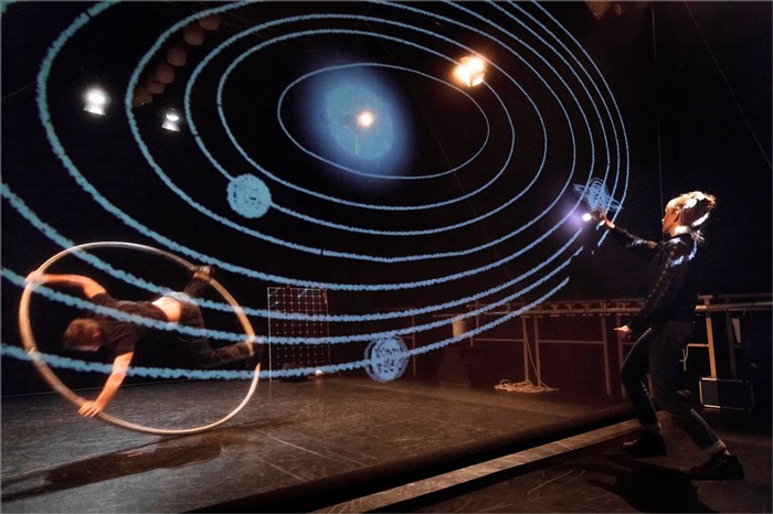 Grâce aux arts du théâtre, du cirque, de la musique et de la magie, on se délecte de cette conférence-démonstration scientifique sur le cosmos, le mouvement, la gravité et le temps.