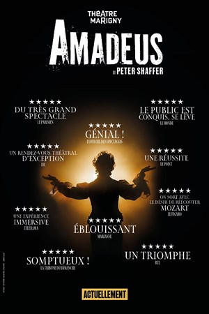 Amadeus, le chef d'oeuvre de Peter Shaffer rendu célèbre au cinéma par Milos Forman (8 Oscars 1985), est LE spectacle événement du Théâtre Marigny, avec une mise en scène signée Olivier Solivérès.