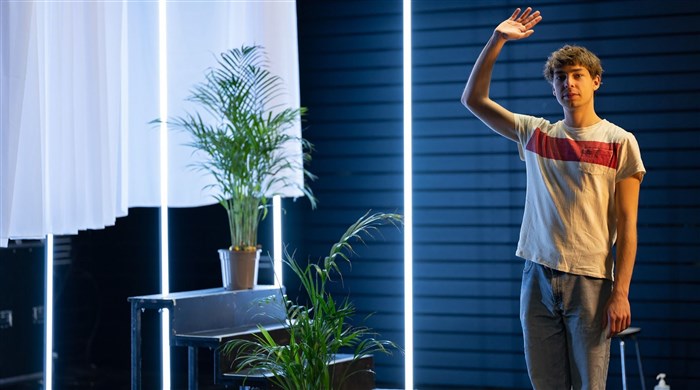 Lui est déjà là, et il l'attend. "Elle" le rejoint depuis sa place dans la salle, pour être sa mère. "Elle", ou un.e autre – on ne sait pas.