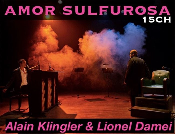 Amor sulfurosa par le talent du choix des textes, la très belle musique, votre mise en scène de grande qualité, vos qualités de chanteurs, acteurs, votre complicité touchante, vos fortes personnalités individuelles, est un spectacle total, fin, doux, tendre, fougueux et curieusement non choquant. Quelle belle restitution de textes et de chansons ! Ovation largement méritée. Edouard Shoene. Très beau spectacle orchestré par la tendre complicité d'Alain Klingler et de Lionel Damei. Leurs voix chantées ou parlées s'accordent avec bonheur. Et puis l'un joue du piano et l'autre danse et c'est beau. Vous avez deviné : j'ai beaucoup aimé. Françoise Deslande.
