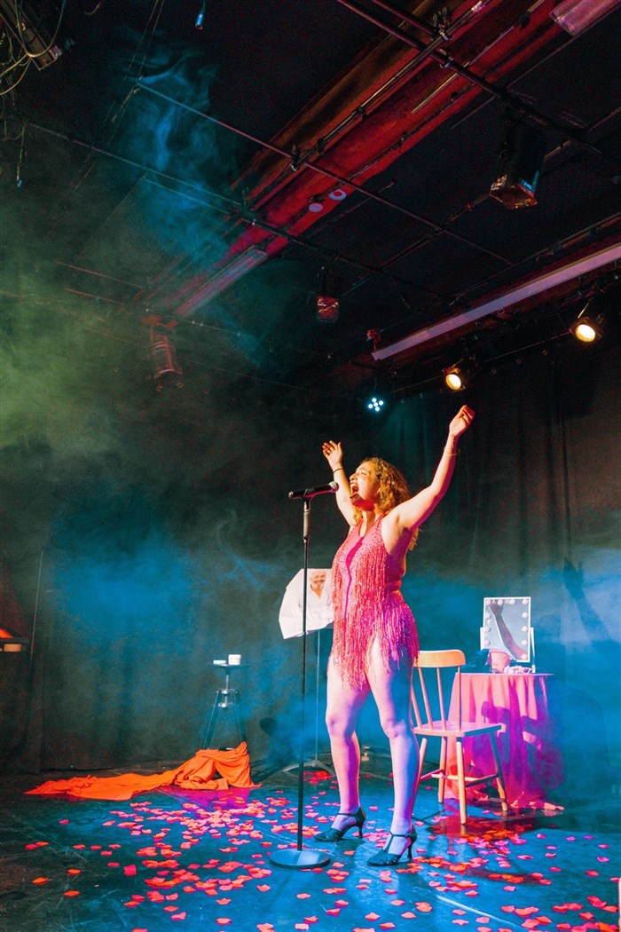 Seule en scène. Théâtre musical et chorégraphié. Fresque sentimentale et burlesque, rythmée par les airs envoûtants de Broadway.