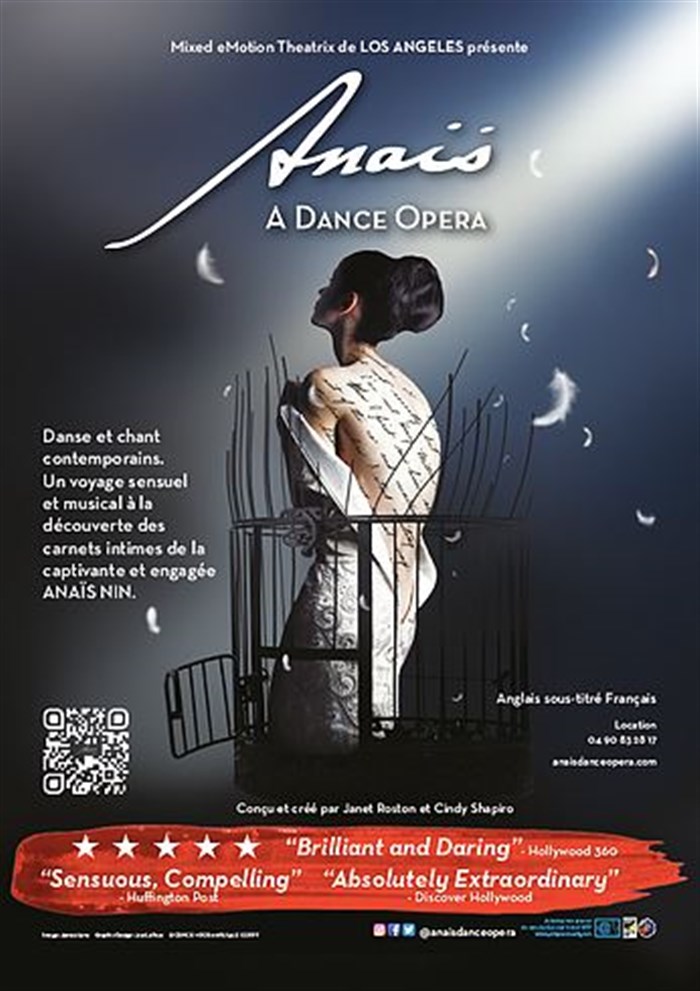 Anaïs, a Dance Opera est une production envoûtante, entremêlant danse, musique et théâtre, qui explore et met en lumière la vie fascinante de la célèbre diariste, Anaïs Nin.