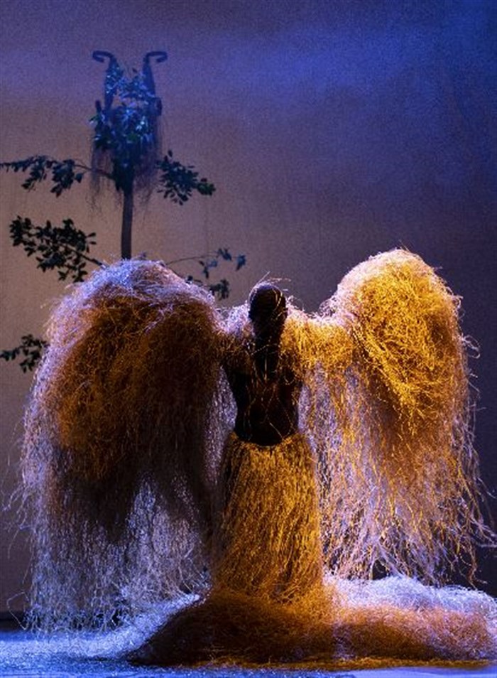 Une chorégraphie précise et pleine de surprises déploie une métaphore superbe sur l'ancrage et l'élévation humaine dans les forces de la nature (pour le dire un peu vite). Aucun "numéro" de bravoure qui ne soit inclus dans une invention inspirée de ce récit que tissent les corps, solo et duo, avec les actes de la plantation, de la pousse, des mutations heureuses et tragiques de l'arbre, et surtout avec la matière : les transmutations du rafia en masse respirante, masque, vêtement, coulée ou flamme dans les mains du jongleur. Le sublime est atteint, appelant légendes, mythes et utopies dans les gestes assurés, rythmés, pleins des deux artistes. Cette découverte est inoubliable. Je souhaite le plus éclatant succès à ce cirque exceptionnel. Il le mérite.