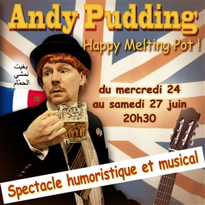 Il évoque avec drôlerie et sensibilité les travers et quiproquos qu'il rencontre dans ses tentatives maladroites d'intégration. Andy pudding nous fait rire et nous émeut par sa naïveté et son absence de préjugés. Les sketchs sont entrecoupés d'une belle brochette de chansons variées (française, rap, bossa et funk). Humour décalé au rendez-vous.