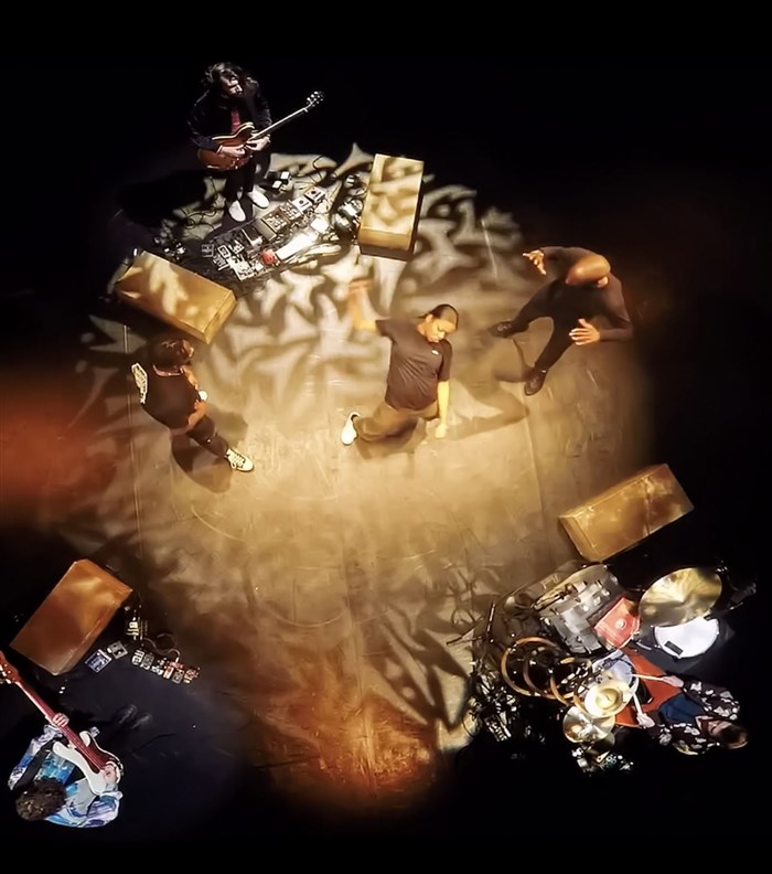 Sur scène, les trois musiciens du groupe interagissent avec les trois danseurs. Il résulte de cette rencontre au sommet un spectacle électrique, où les mouvements vibrent au rythme fiévreux des nappes sonores.