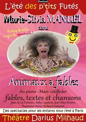 1 heure où les enfants apprennent à connaître La Fontaine, la genèse de ses fables, leurs codes et leur signification, c'est l'ambition enjouée de Marie-Silvia Manuel, accompagnée avec humour au piano par son complice Marc Goldfeder. Ce nouveau spectacle se veut à la fois didactique, ludique, poétique et musical : Marie-Silvia raconte, chante et mime. Elle fait jouer aux enfants le corbeau, le renard, le fromage et les fait réfléchir sur les morales des histoires.
