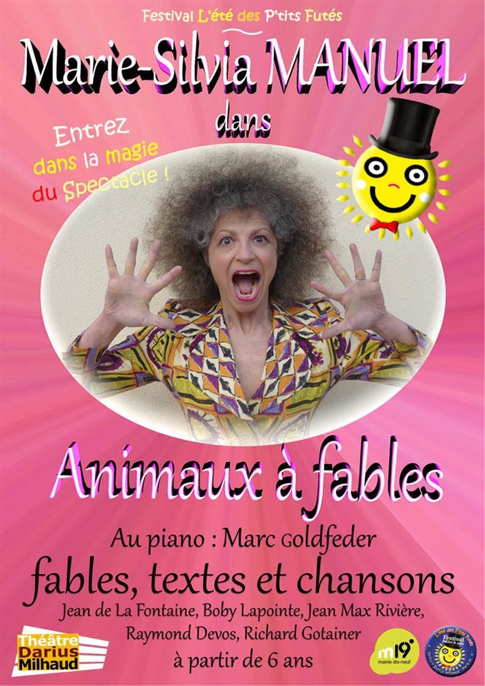 1 heure où les enfants apprennent à connaître La Fontaine, la genèse de ses fables, leurs codes et leur signification, c'est l'ambition enjouée de Marie-Silvia Manuel, accompagnée avec humour au piano par son complice Marc Goldfeder. Ce nouveau spectacle se veut à la fois didactique, ludique, poétique et musical : Marie-Silvia raconte, chante et mime. Elle fait jouer aux enfants le corbeau, le renard, le fromage et les fait réfléchir sur les morales des histoires.
