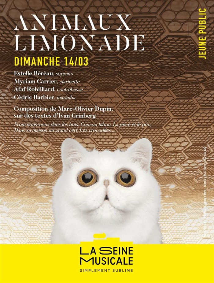 L'univers musical du compositeur Marc-Olivier Dupin fait la part belle à l'enfance. La lecture des textes de Grinberg à l'inventivité fantaisiste est le déclencheur de la composition d'un petit bestiaire musical savoureux. Clarinette, contrebasse, marimba et chanteuse s'y donnent la réplique et vous racontent l'histoire de Tamtam popote l'hippopotame gourmand, de Loufoque le phoque ou encore de l'insecte Éphémère.